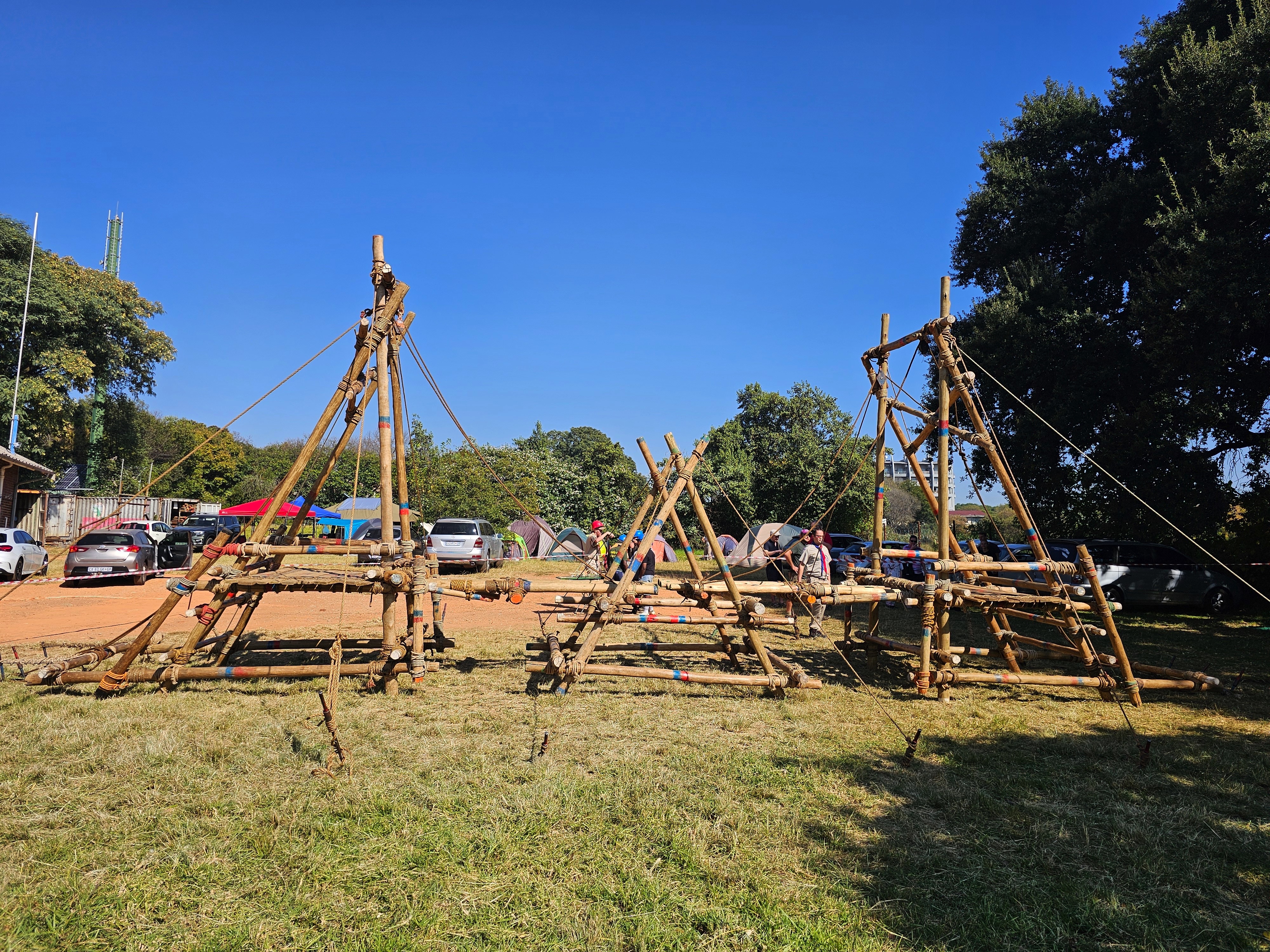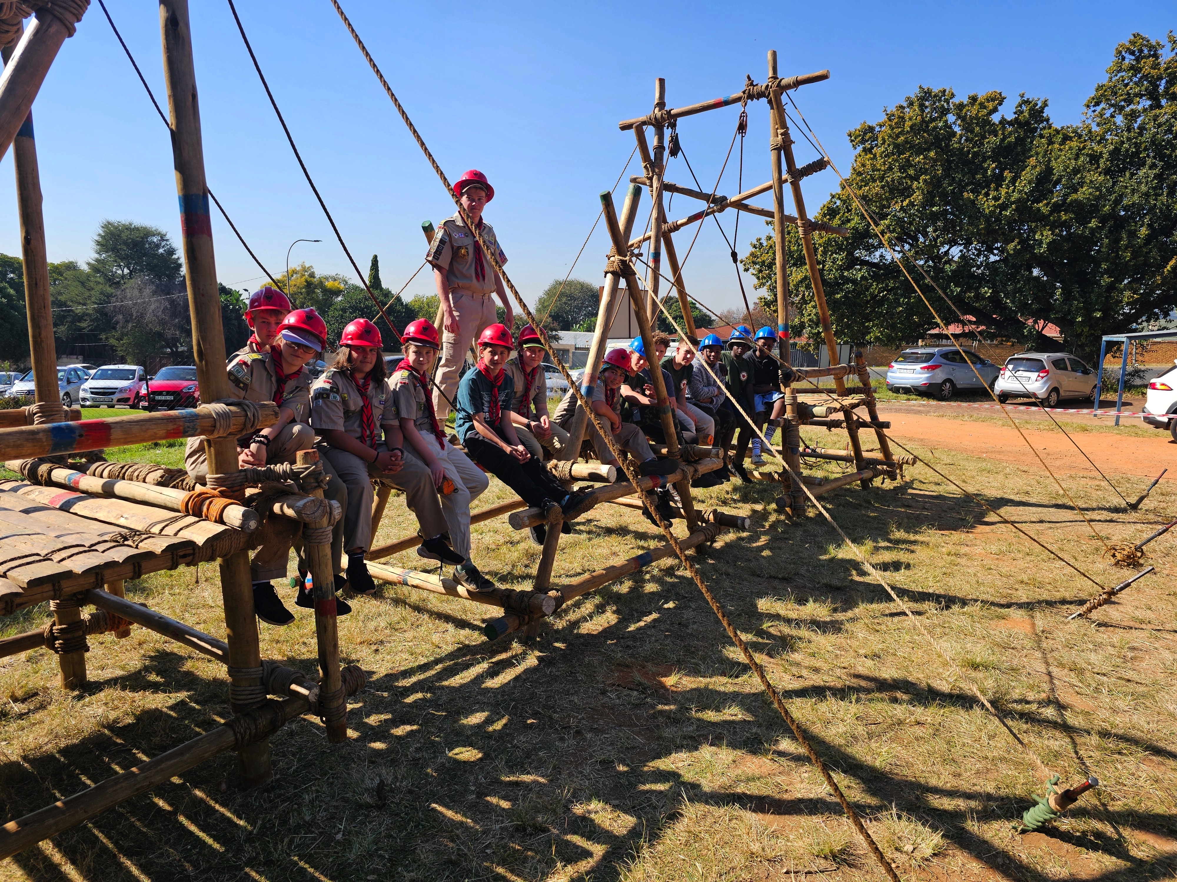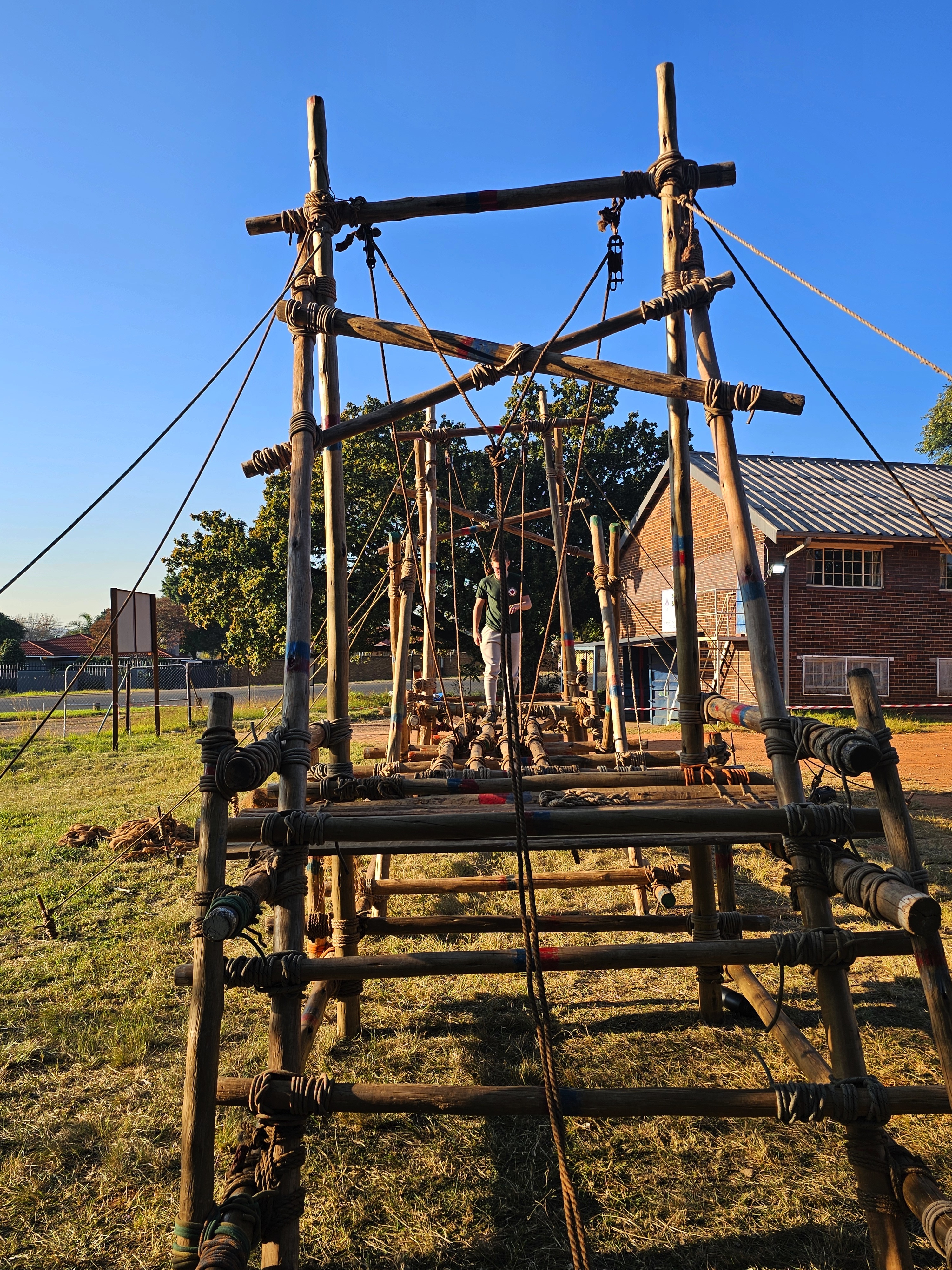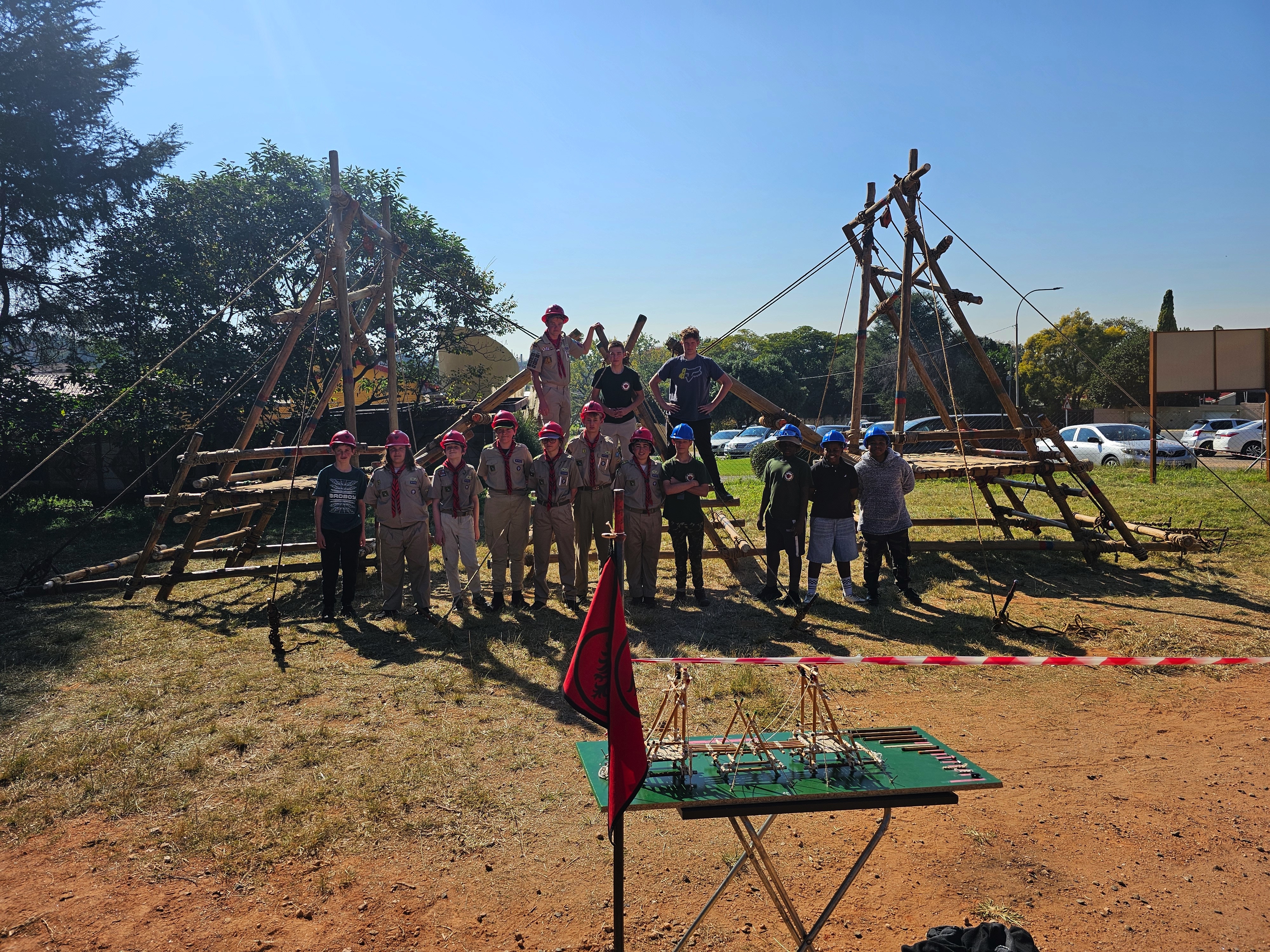 The Springbok Construction was planned by Jaryde Hulley for his major project. Jaryde is a Scout with the Jan Smuts Scout Group, and both Sandringham and Jan Smuts work very closely together on a lot of badges, event planning etc, so when the time cam e for the project, it made sense to use th Sandringham pioneering equipment (a mix of both Sydsand and Glenhurst Poles).