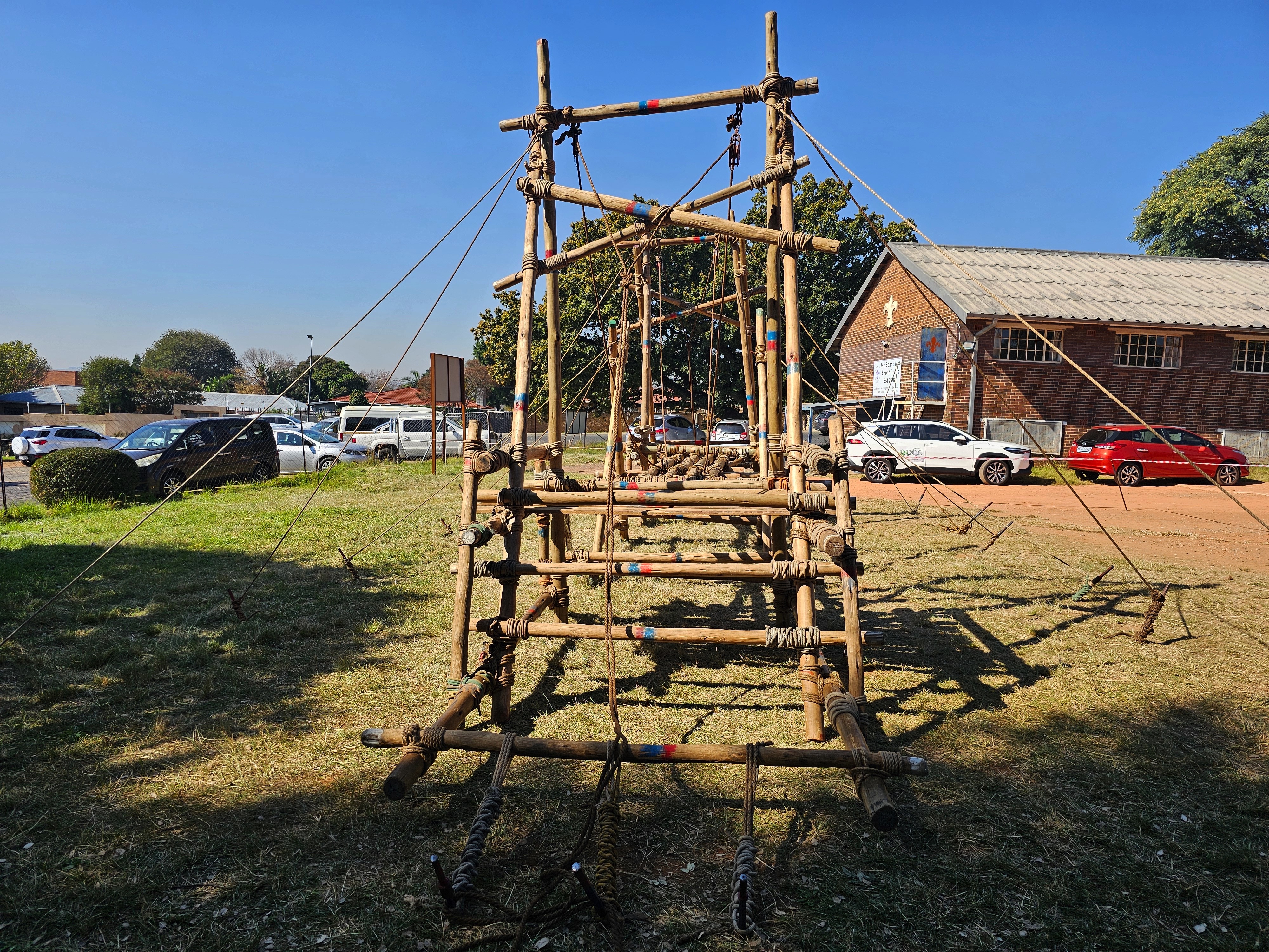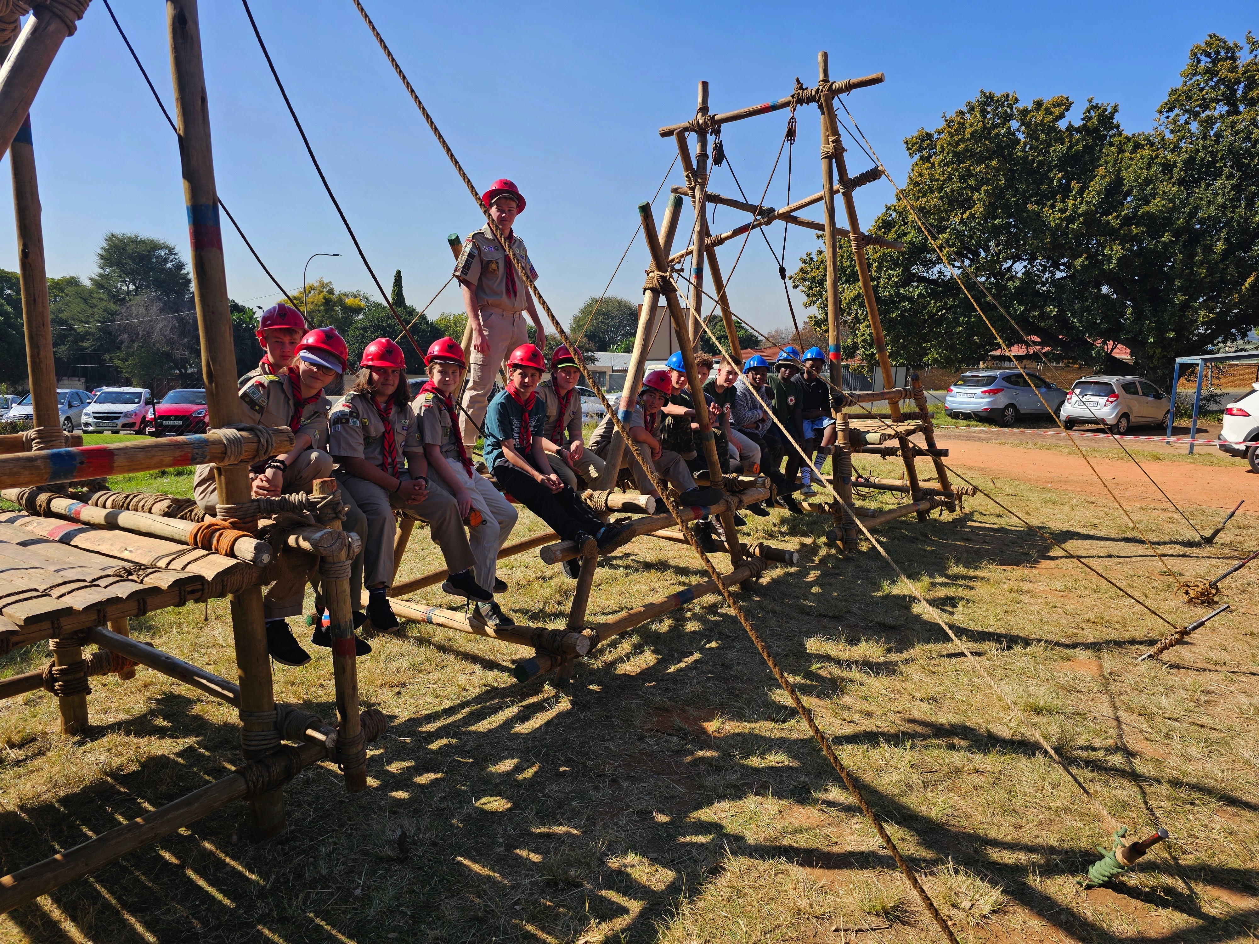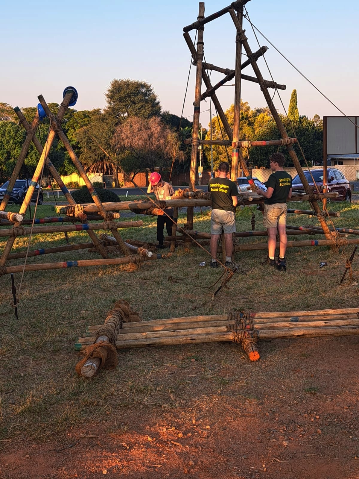 The Springbok Construction was planned by Jaryde Hulley for his major project. Jaryde is a Scout with the Jan Smuts Scout Group, and both Sandringham and Jan Smuts work very closely together on a lot of badges, event planning etc, so when the time cam e for the project, it made sense to use th Sandringham pioneering equipment (a mix of both Sydsand and Glenhurst Poles).