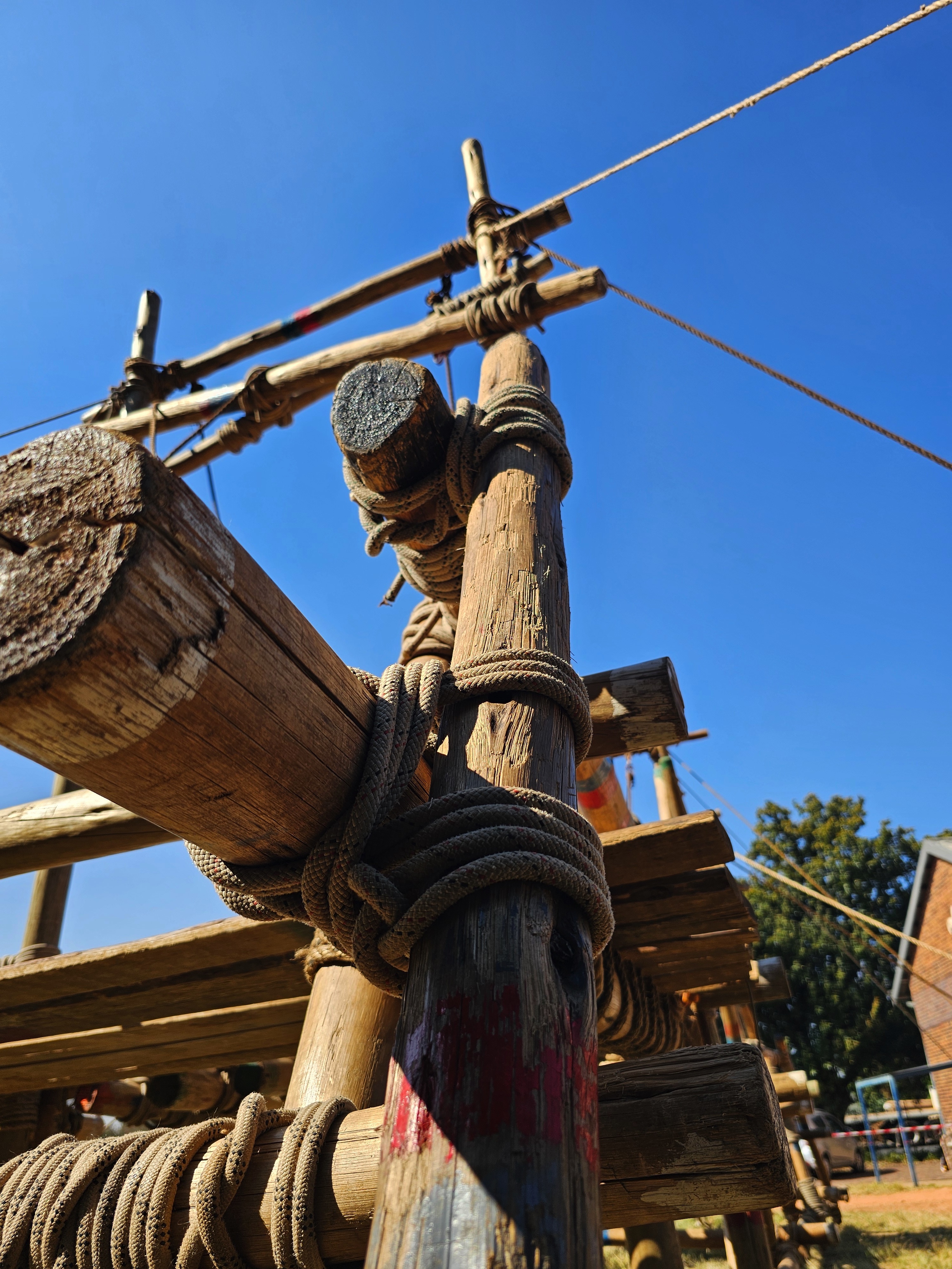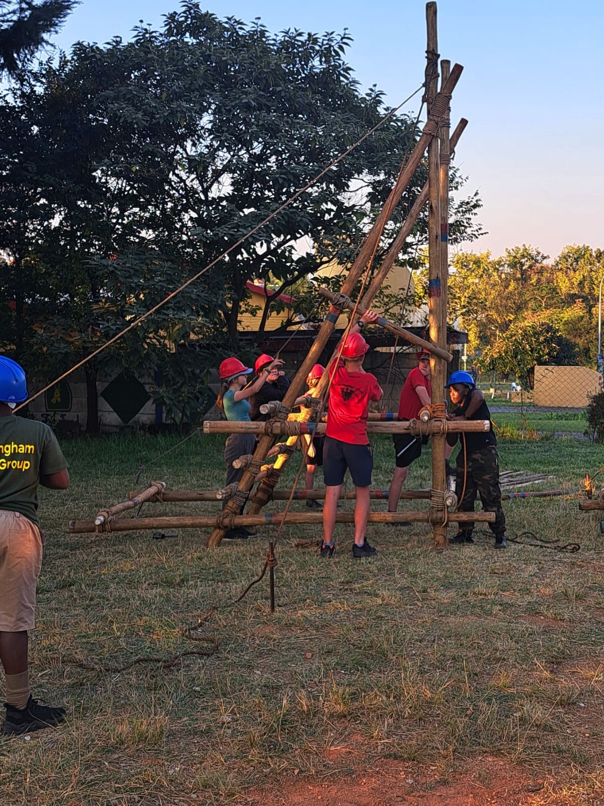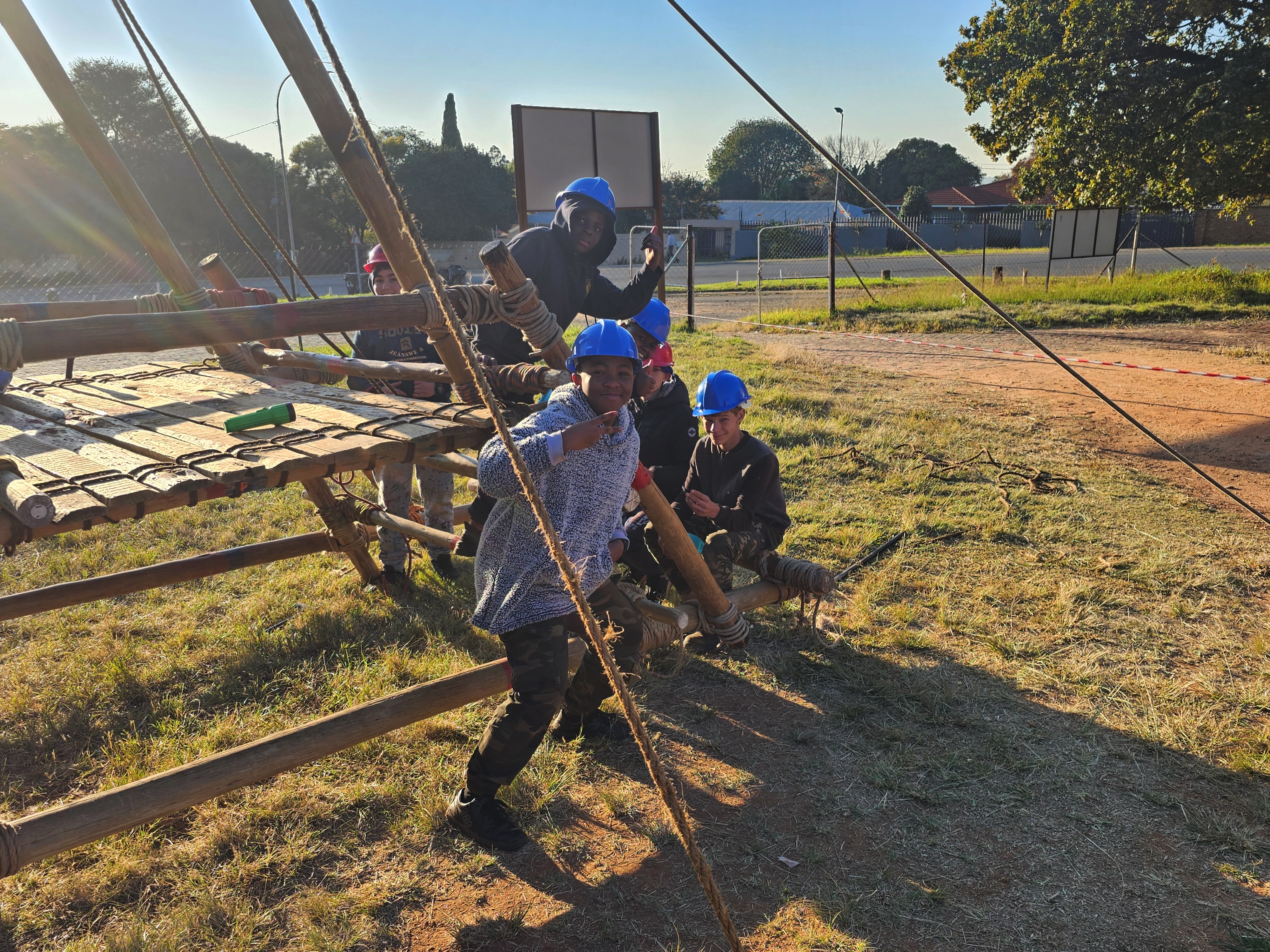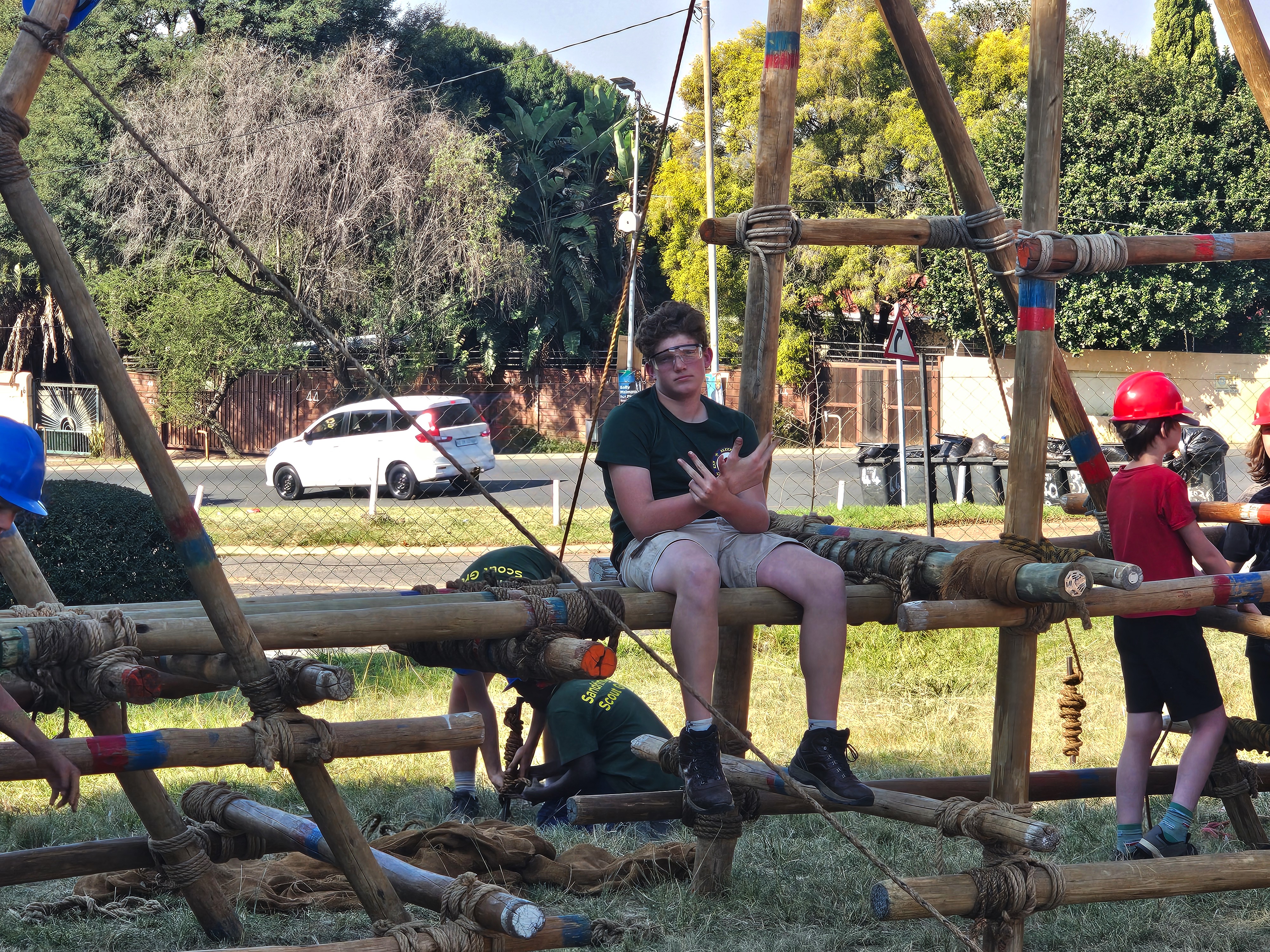 The Springbok Construction was planned by Jaryde Hulley for his major project. Jaryde is a Scout with the Jan Smuts Scout Group, and both Sandringham and Jan Smuts work very closely together on a lot of badges, event planning etc, so when the time cam e for the project, it made sense to use th Sandringham pioneering equipment (a mix of both Sydsand and Glenhurst Poles).