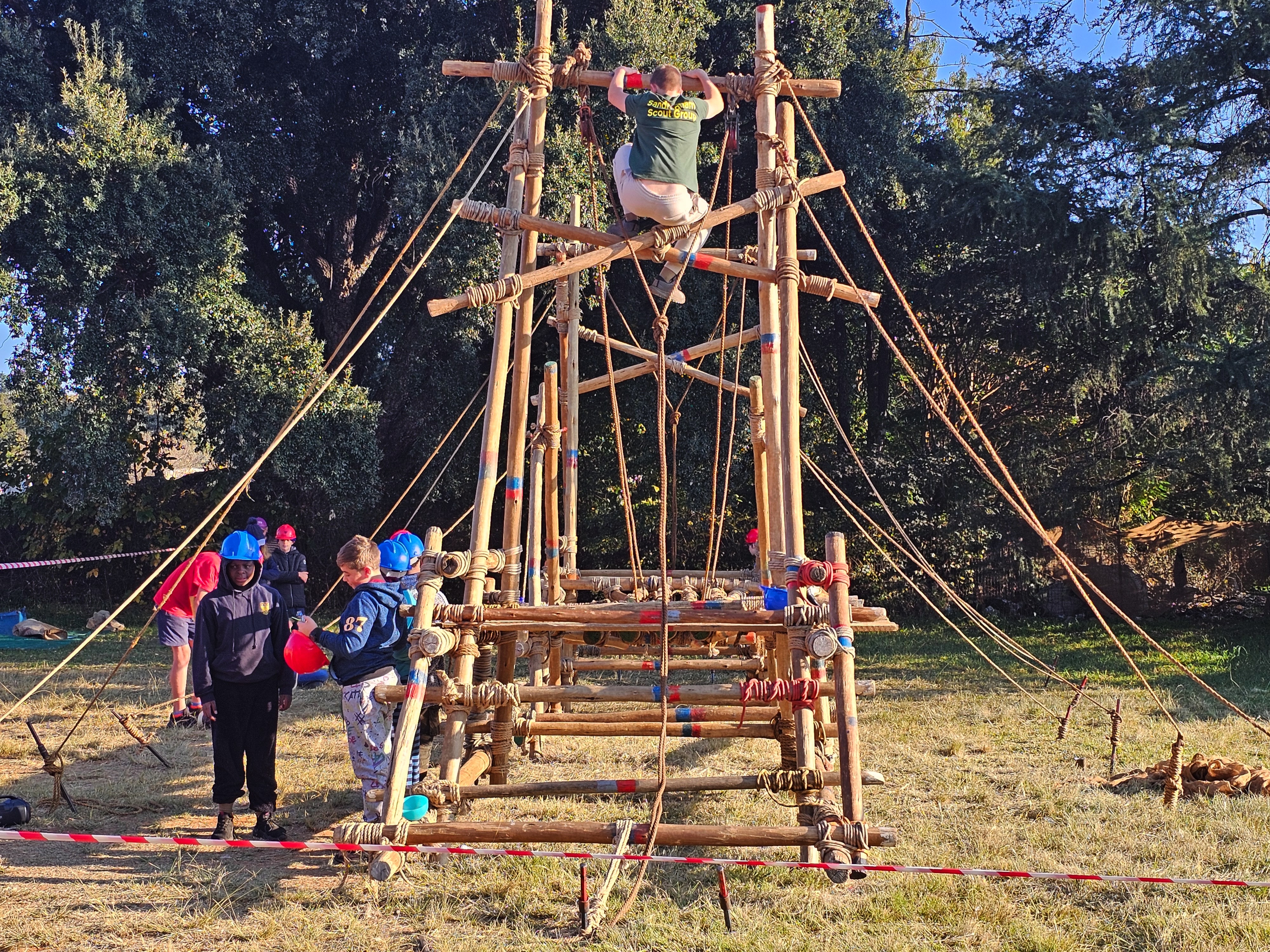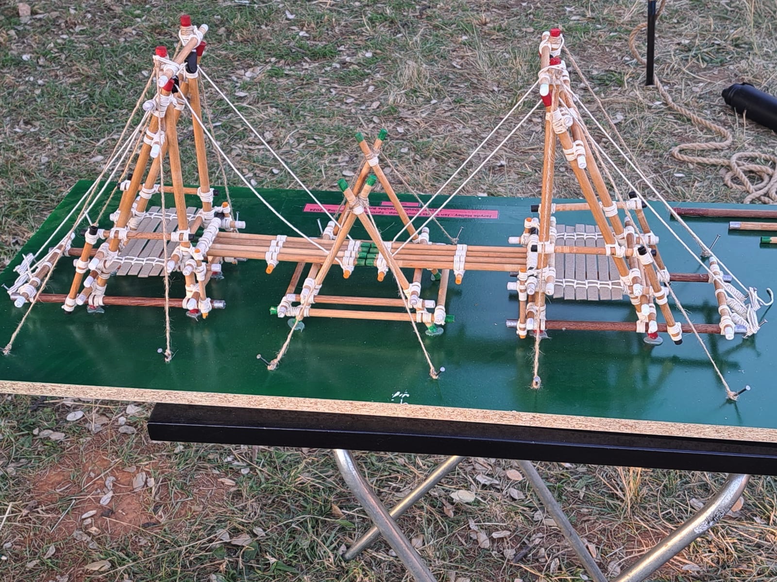 The build started at 17:00, with Scouts being briefed on what had to be done. The build was a rather unusual design of a double draw bridge. The model was used extensively during the weekend to reference so that it was built to the same specifications. Only a single change was made to the design over the entire build. Two 4-foot poles added to the bridge sections to stop twisting. Models work very differently to real life builds.